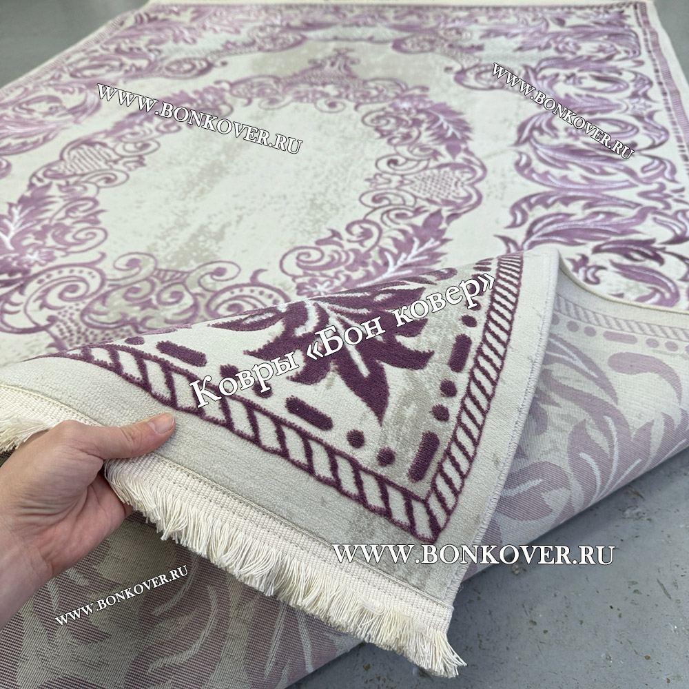 Красивый Ковер Медальон Для Гостиной Дизайн 30543 Сиреневый наполняет интерьер гостиной теплом и уютом, гармонично сочетает в себе изящество и красоту. Он создан из экологически чистого сырья, комфортный и долговечный.